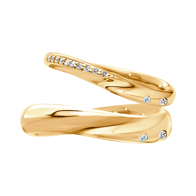 「海」。すべてを包みこみ優しく慰めてくれる、あなたにとって大きな海のような存在でいたい。繰り返される波のようにお互いを想い合う心の行き交いが波をモチーフに表現されています。